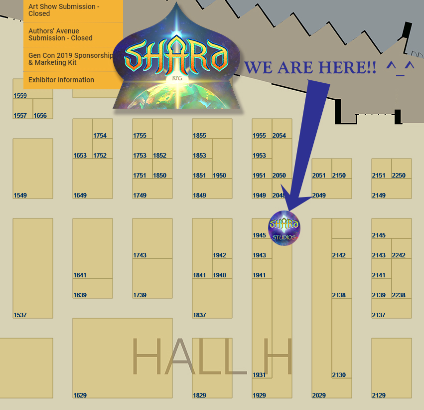 As I mentioned above, It's #GenCon time again! Shard Studios has a whole booth this year (area 1929 Studio 2 area) ready to run little mini-demos right inside. We're also holding 5 of our 4-hour games in various areas of the con. Get your tickets here bit.ly/2ZmOPF5, and join us for a game!